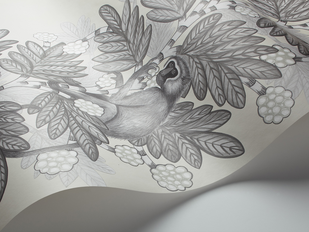 The Acacia tree is an enduring sight in Africa with its bright yellow ‘fluff-ball flowers and holds warm memories for Ardmore founder Fee Halsted. Having always had monkeys around her as a child, these humorous animals full of wit, pranks and intelligence have created a soft spot in her heart, and in turn, have provided the inspiration for this striking new ‘conversational’ wallpaper. Designed to create a wide striped effect, this paper is subtle yet will add drama, especially with the addition of our two charming pranksters.