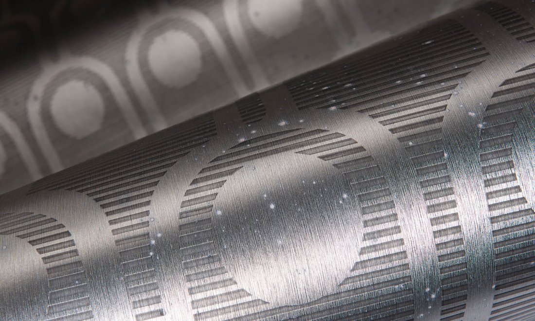 This wallcovering is made of real metal foil. During production, the metal foil goes through an intensive process that was developed especially for this collection. It is coloured in such a way that the wallcovering takes on the nuances of an authentic metal look. Finally, the patterns are embossed on the wallcovering and finished with a thin layer of satin paint. Matching plains can be found in collection Metal X.
