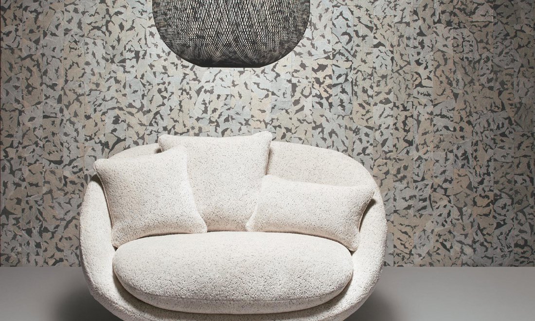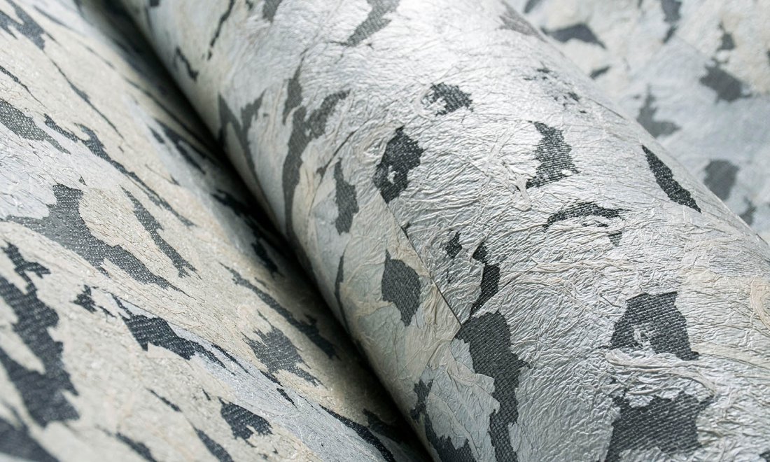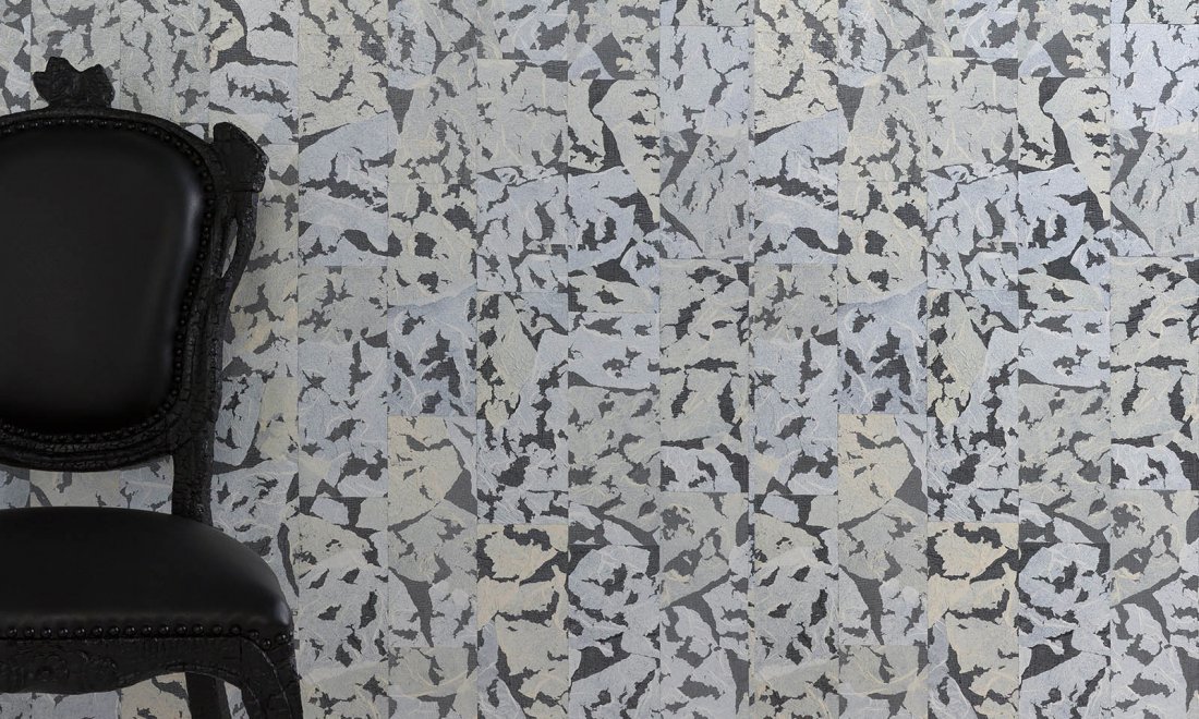 Wallcovering with gauze and Japanese paper, representing the shiny coat of the Armoured Boar. The upper part of its body was covered in black and golden scales, which gave it an ornamental appearance.