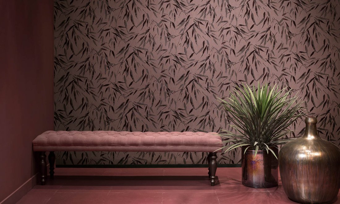 Be in no doubt, the linen structure creates a natural look, with the bamboo lending an added nuance. The elegant bamboo leaves in the pattern have an instantaneous cheering effect. The flock and metallic interplay results in a luxurious feel.