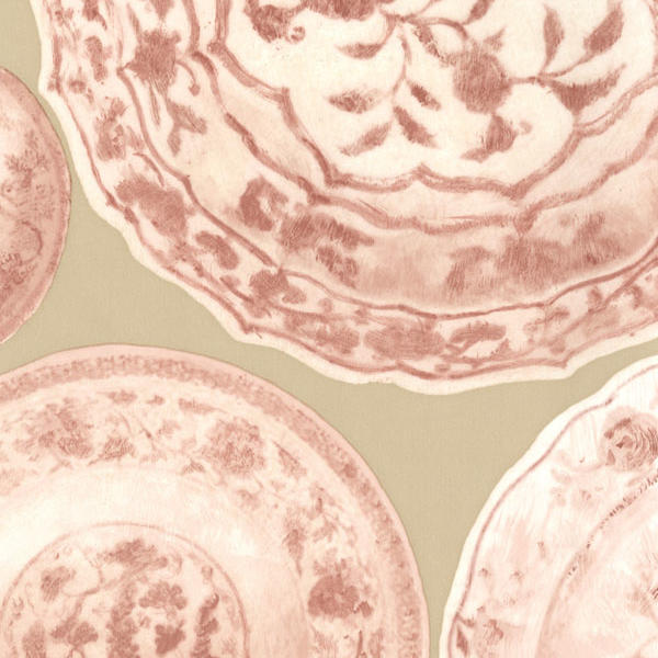 Cargo features a repeat motif of china plates, each presenting a traditional floral pattern or landscape scene. Charming and decorative in rosebud red and with just enough Andrew Martin quirk, this is perfect for a kitchen or dining room.