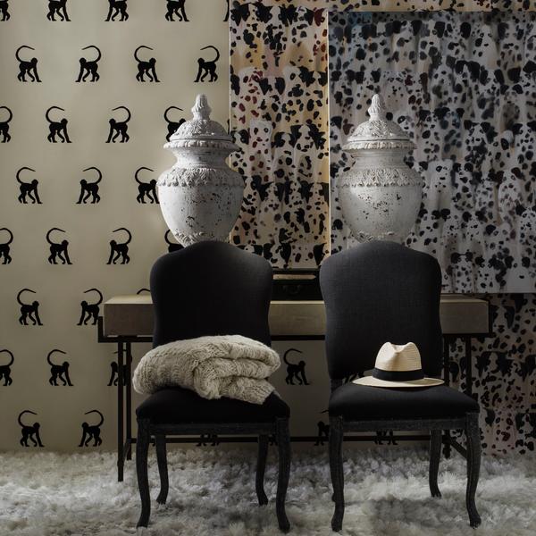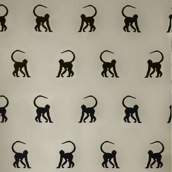 A single monkey motif flocked onto a chalky paper, available in three smart colourways. Escape with this furry monkey as it climbs off the walls.