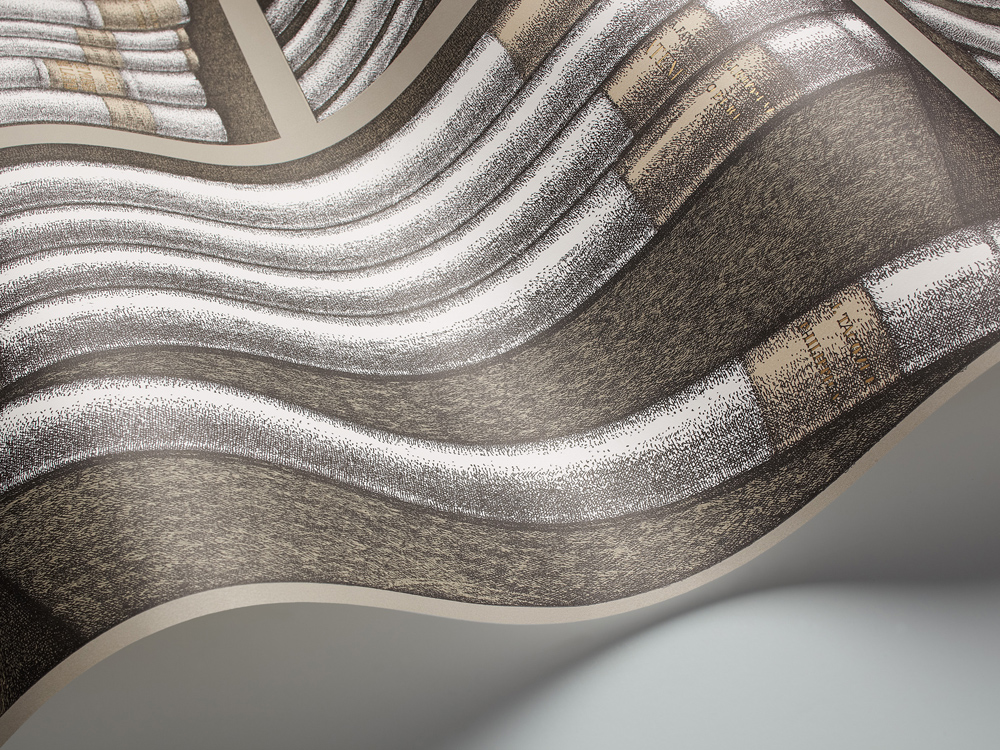 An avid collector of literature volumes on the applied arts, Fornasetti used books as a recurring theme which can be found throughout the Atelier’s archive. This library Trompe l’oeil scene, abundant in leather-bound books, is adapted from a 1953 screen. Reintroduced for Senza Tempo, classic Fornasetti palettes of Stone and Linen, Oat and Charcoal, and Gold and Magenta form a vibrant and conversational wallcovering.