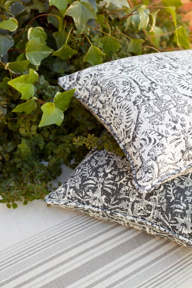 Endless Summer Collection – Kediri: Item No: 27057-003, Color: Charcoal, Category: Jacquard, 100% Solution Dyed Acrylic, Approx Width: 54″, Approx Rpt: V. 9 7/8″, H. 7, Washable – Bleach Cleanable, Nano-finish Stain Repellent, 3 Year Warranty Against Fading, For Indoor & Outdoor Use, This pattern is reversible, NFPA 260 – Class 1, 12,000 Wyzenbeek D.R., Lightfastness: Meets or Exceeds 2,000 hours