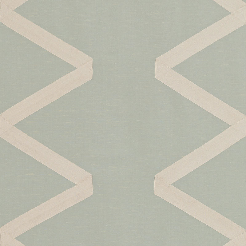 A gorgeous silk-linen embellished with a surprising zigzag grosgrain ribbon is elegant yet delightfully unfussy.