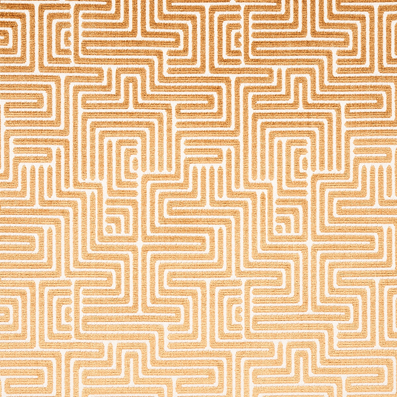 This unique, labyrinthine pattern was inspired by Portuguese tilework. It’s winding, linear motif has a striking, large scale and a subtle, metallic sheen.
