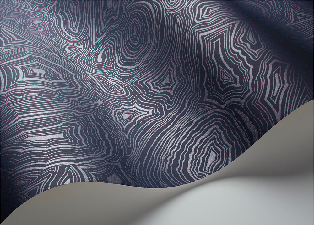 The intricate curves and ripples of semi-precious stones and fossils appear throughout Fornasetti’s work, with the hypnotic curves becoming synonymous with the Fornasetti canon. The iconic Malachite is presented in unique luminous mineral shades with airy Parchment and subtle Gold, and Royal Blue and Silver, as well as the arresting Emerald and Black, and White and Black for a captivating interior option.