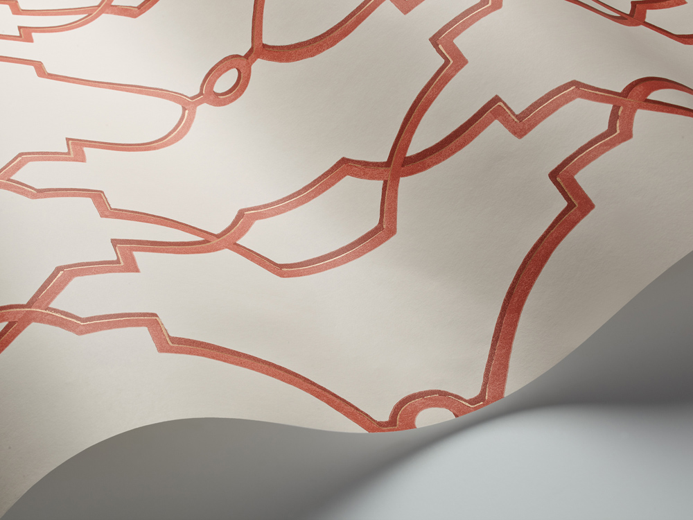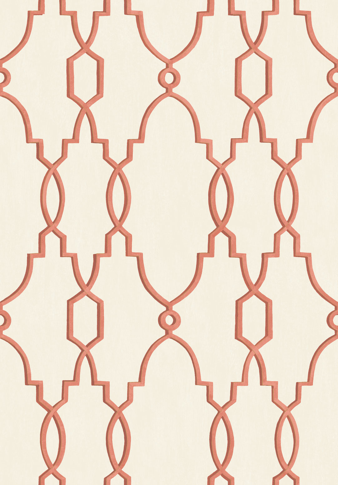 A delicate trellis design inspired by the intricate garden designs of 16th and 17th century France and still found in many parks and gardens today. This wallpaper pattern is printed in seven delightful colorings including stone, charcoal, French grey, cobalt, green, classic red, and metallic gold.