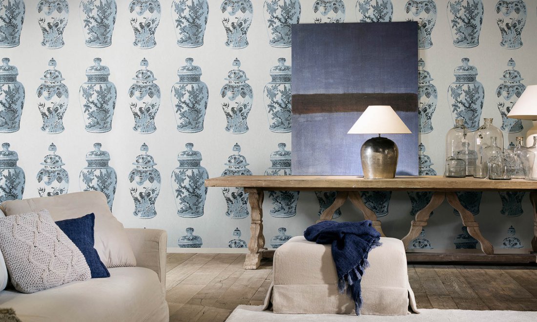 Minutely painted jugs and vases: for centuries they have appealed to people’s imagination. This pattern brings them as large as life onto your wall, and as such demand the lead role.