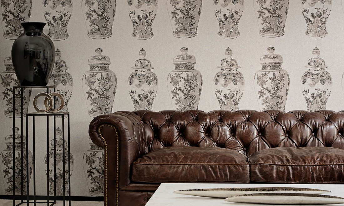 Minutely painted jugs and vases: for centuries they have appealed to people’s imagination. This pattern brings them as large as life onto your wall, and as such demand the lead role.