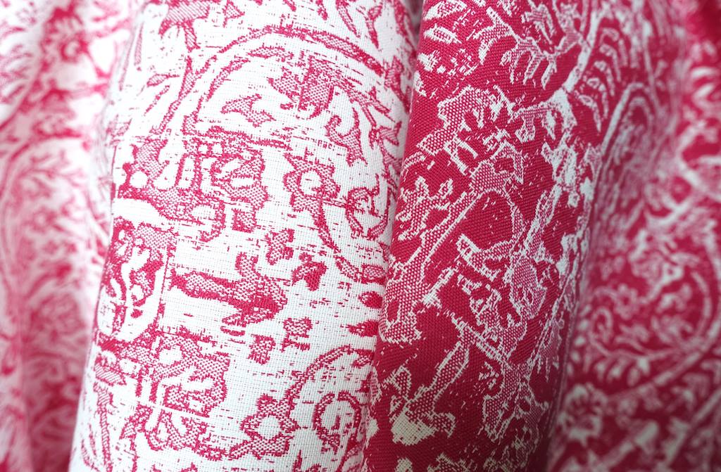 Endless Summer Collection – Sarong: Item No: 27058-003, Color: Hibiscus, Category: Jacquard, Approx Width: 54″, Approx Rpt: V. 9 3/8″, H. 6 7/8″, Washable – Bleach Cleanable, Nano-finish Stain Repellent, 3 Year Warranty Against Fading, For Indoor & Outdoor Use, This pattern is reversible, NFPA 260 – Class 1, Lightfastness: Meets or Exceeds 2,000 hours, 12,000 Wyzenbeek D.R.