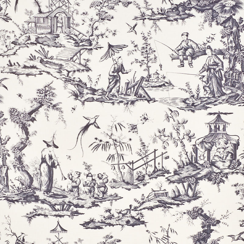Shengyou Toile is based on a priceless 18th-century document in our archives by court painter Jean-Baptiste Pillement. Hand-engraved, this pattern has rich dimension and is full of delightful surprises.