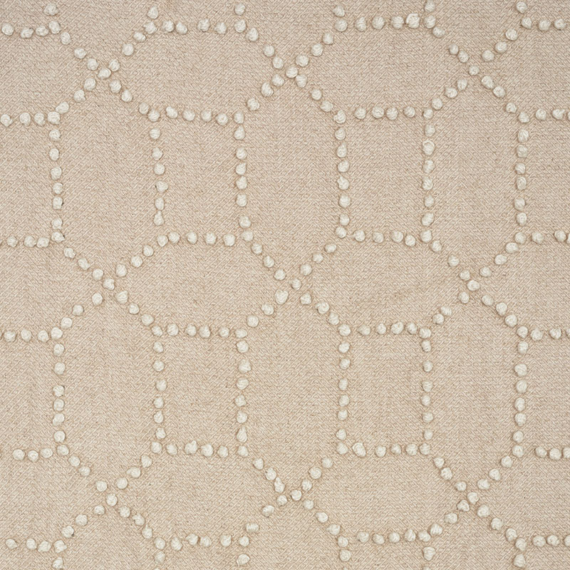 Hand-embroidered chenille French knots form a delicate and perfectly imperfect geometric pattern on a silky cotton-linen ground.